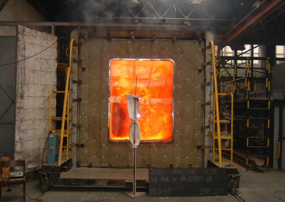 The windows have been completely tested with fire-retardant glass, special fire-retardant rubber and frame in accordance with: